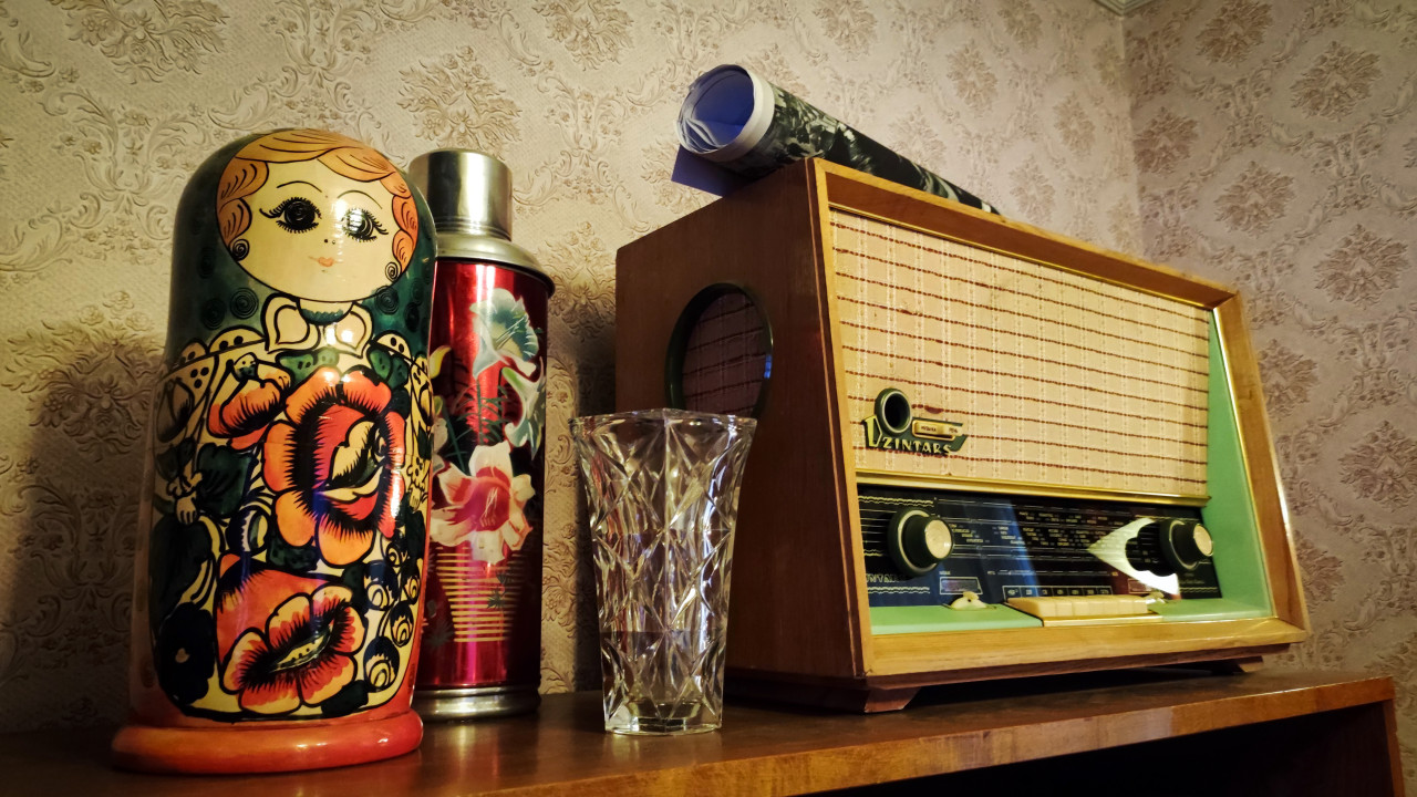 ретро ссср музей экспозиция советский дизайн бытовые вещи винтаж техника прошлого интерьер радио Dzintars СССР ретро матрёшка термос гранёный стакан посуда декоративные предметы полка советский быт интерьер прошлого винтаж обои декоративное искусство коллекция советский дизайн 1960 е антиквариат предметы интерьера раритет полка шкафаПохожие фотографии