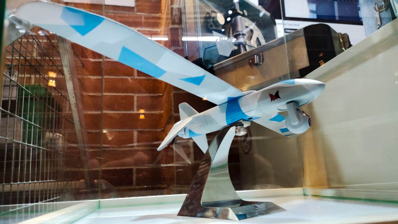 Модель беспилотного летательного аппарата в стеклянной витрине ВДНХ