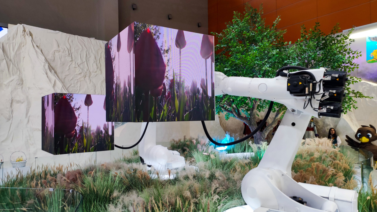 робот робототехника технологии инновации выставка вднх экспозиция демонстрация инженерия высокие технологии презентация Белгородская область ВДНХ форум Россия робот манипулятор LED экран тюльпаны экспозиция растения ландшафт декорация стенд мультимедиа технология павильон экспоцентр интерактив инсталляция современная техника региональный проект оформление видеоконтентПохожие фотографии