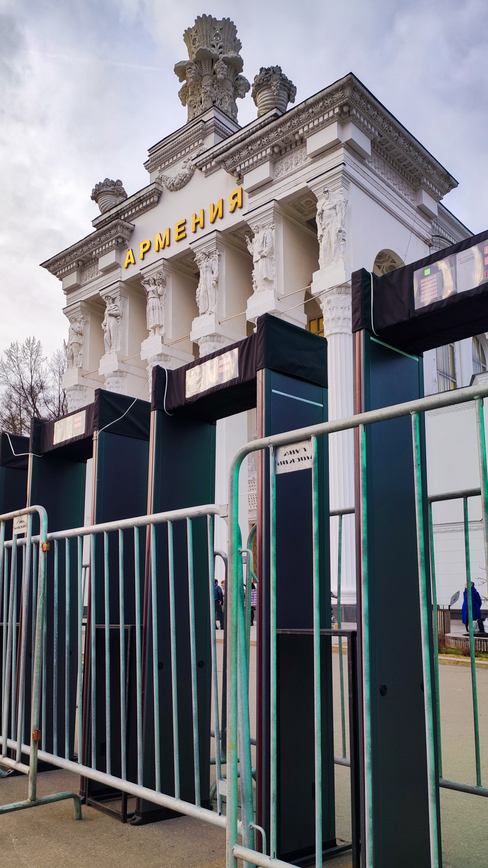 Павильон «Армения» на ВДНХ с рамками контроля перед входом