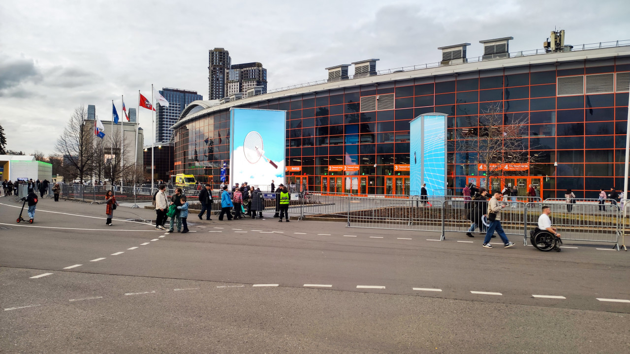 вднх москва выставка россия архитектура павильон общественное пространство городской пейзаж посетители экспозиция культурное событие инфраструктура массовое мероприятие входная зона современная конструкция городской объект ВДНХ павильон 75 выставка Россия международная выставка 2024 стеклянный фасад оранжевые конструкции ограждения безопасность обеспечение порядка Москва дети доступная среда инвалидная коляска флаги уличное пространство выставочная инфраструктура региональные экспозиции площадка форумаПохожие фотографии