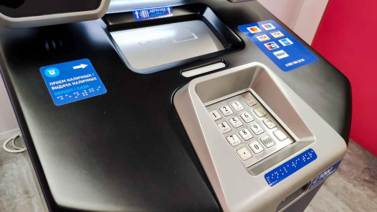 Клавиатура и приёмный модуль банкомата ВТБ в рабочей зоне