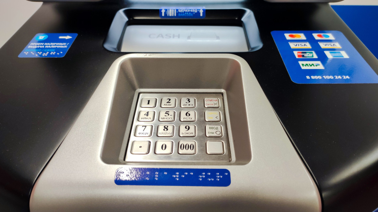 Рабочая зона банкомата ВТБ с приёмником наличных и клавиатурой