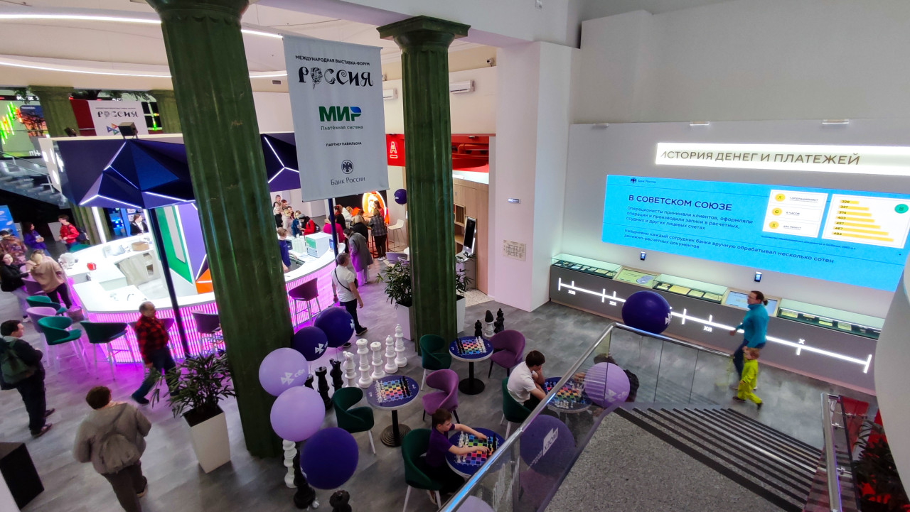 вднх павильон 71 умные финансы банк россии финтех выставка россия экспозиция общественное пространство ВДНХ выставка Россия Умные финансы Банка России колонны архитектура шахматы посетители интерактив стенд история денег экран форум мероприятие Москва 2023 2024 зона отдыха образование платёжные системы дизайн интерьер технологияПохожие фотографии