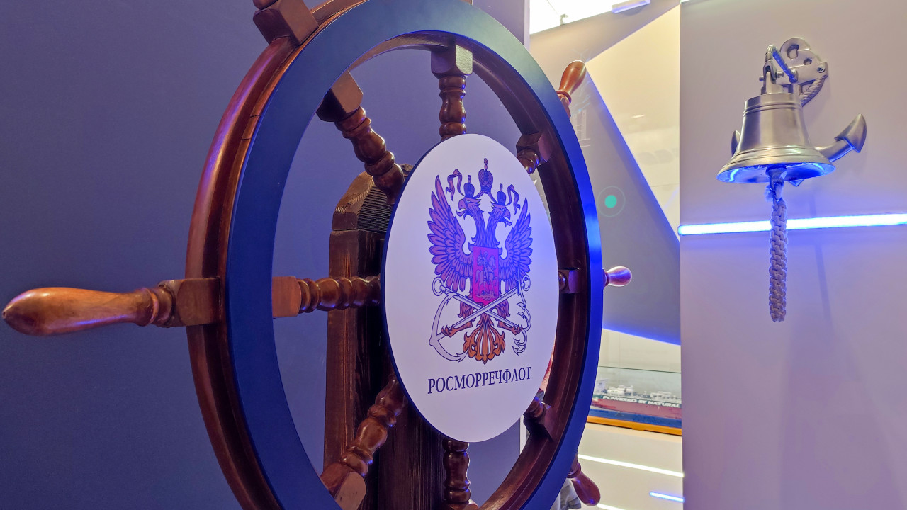 Штурвал с эмблемой Росморречфлота на выставочном стенде