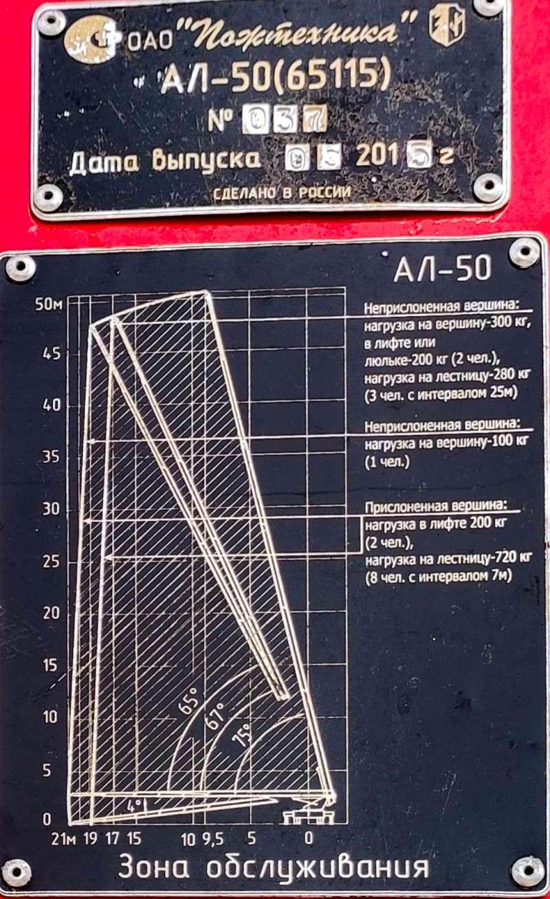 пожарная техника мчс россии спецтехника пожарная служба спасатели вднх москва выставка пожарный автомобиль аварийные службы спецоборудование служебный транспорт безопасность МЧС России АЛ 50 паспорт табличка технические данные ВДНХ пожарная машина высотные работы автолестница диаграмма нагрузка конструкция оборудование Москва металл транспорт информация пожарное оборудование индустриальный объект детали техника безопасности маркировкаПохожие фотографии