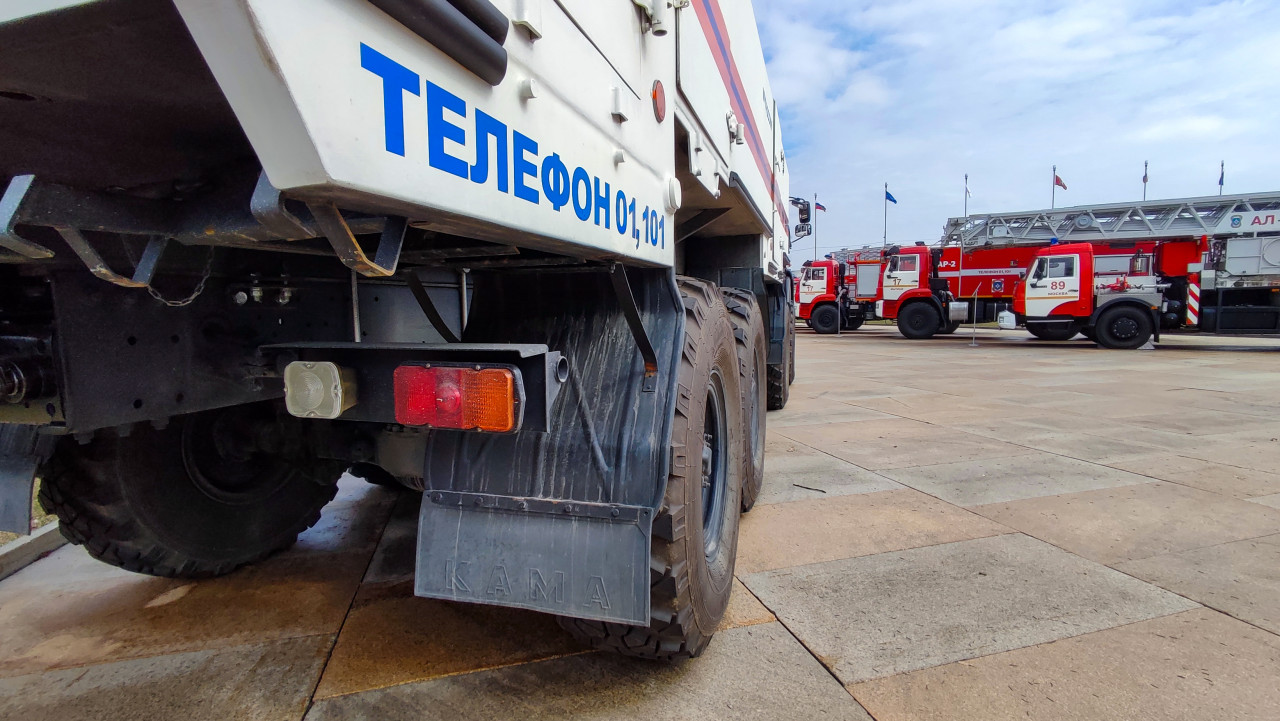 Фрагмент автолестницы АЛ-50 на фоне техники МЧС России
