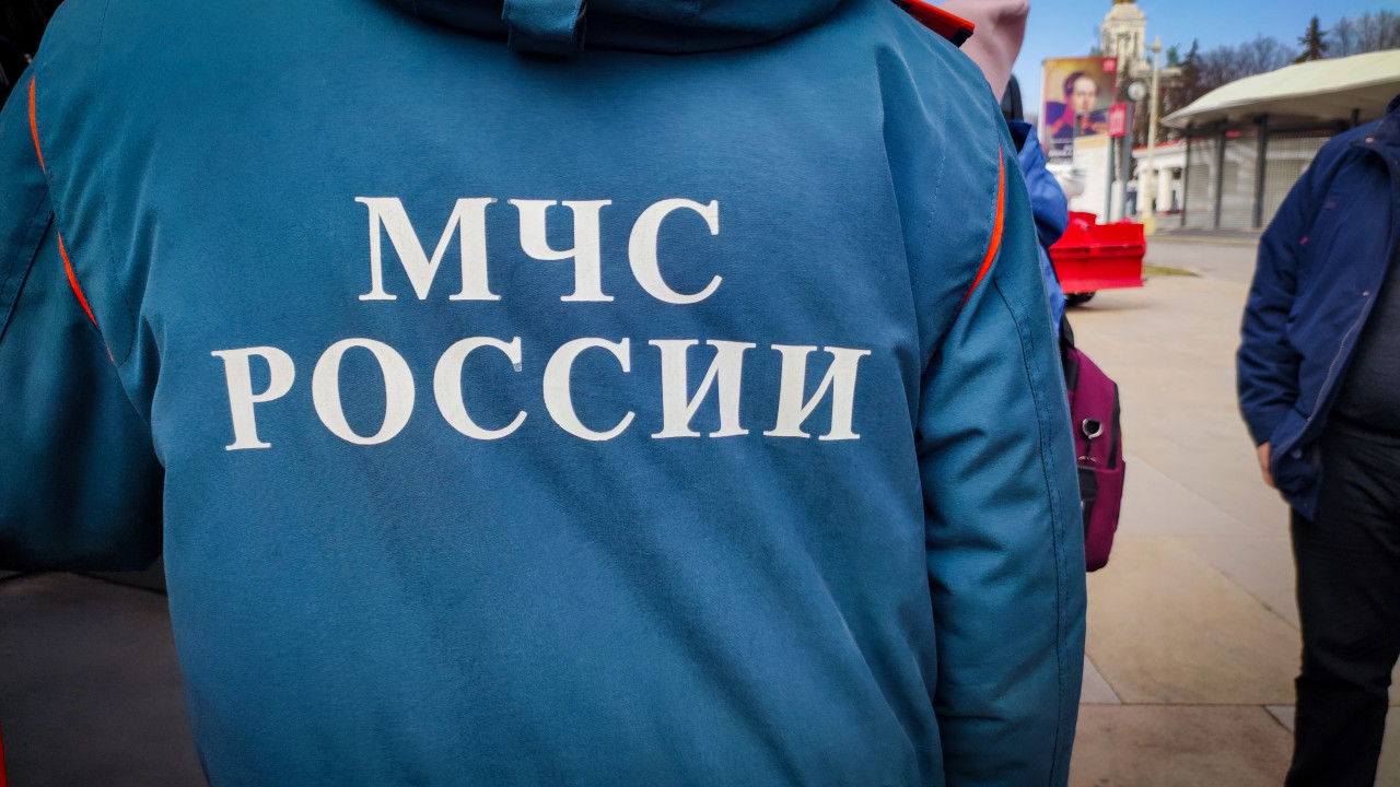 Форменная куртка МЧС России с надписью ведомства на выставочной площадке