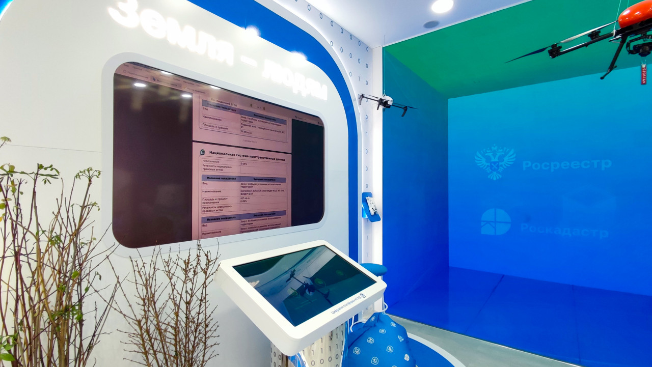 Интерактивная зона Росреестра с дронами и мультимедийными панелями