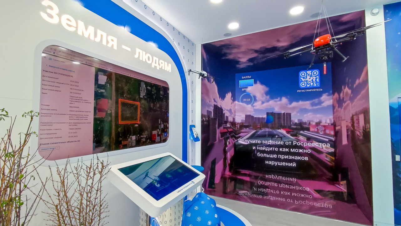 Экспозиция Росреестра с кадастровой картой и симулятором проверки нарушений