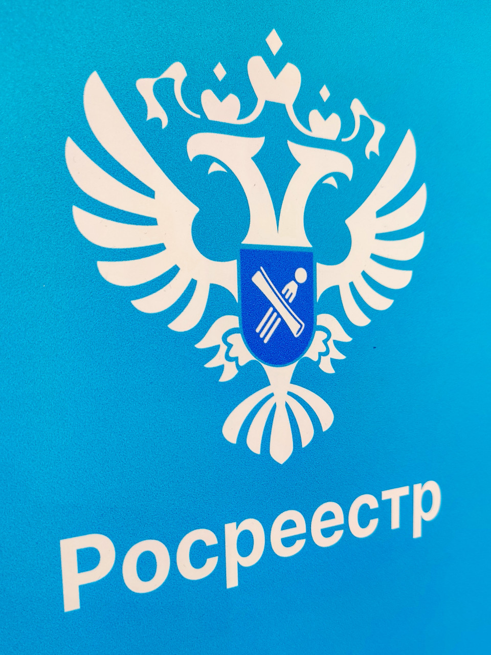 На фотографии показан крупный логотип Росреестра на ярко-голубом фоне внутри экспозиции «Строим будущее», представленной на выставке «Россия» в 2024 году в павильоне №15 «Поволжье» на ВДНХ. В кадре виден официальный герб ведомства и фирменная стилистика, использованная в оформлении стенда. Снимок отражает визуальную часть презентации цифровых и кадастровых сервисов, демонстрируемых на площадке. Изображение подходит для материалов о государственных услугах, выставочных экспозициях и современном оформлении стендов.