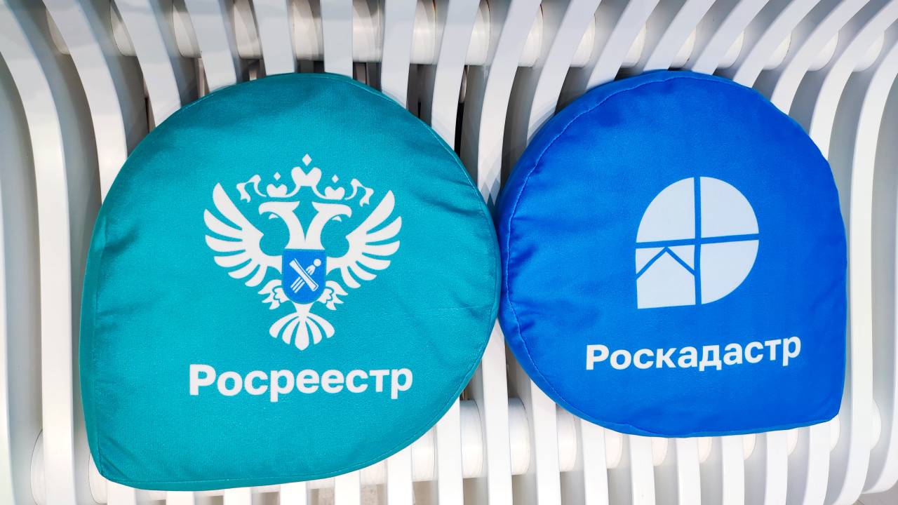 Фирменные подушки Росреестра и Роскадастра на выставочной лавке