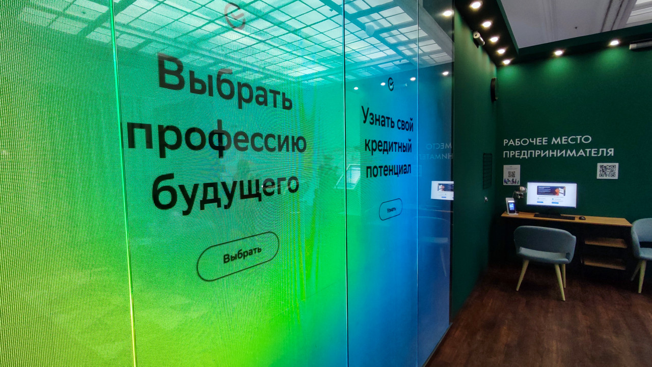 Полупрозрачный интерактивный экран в зоне профориентации и финансовой оценки
