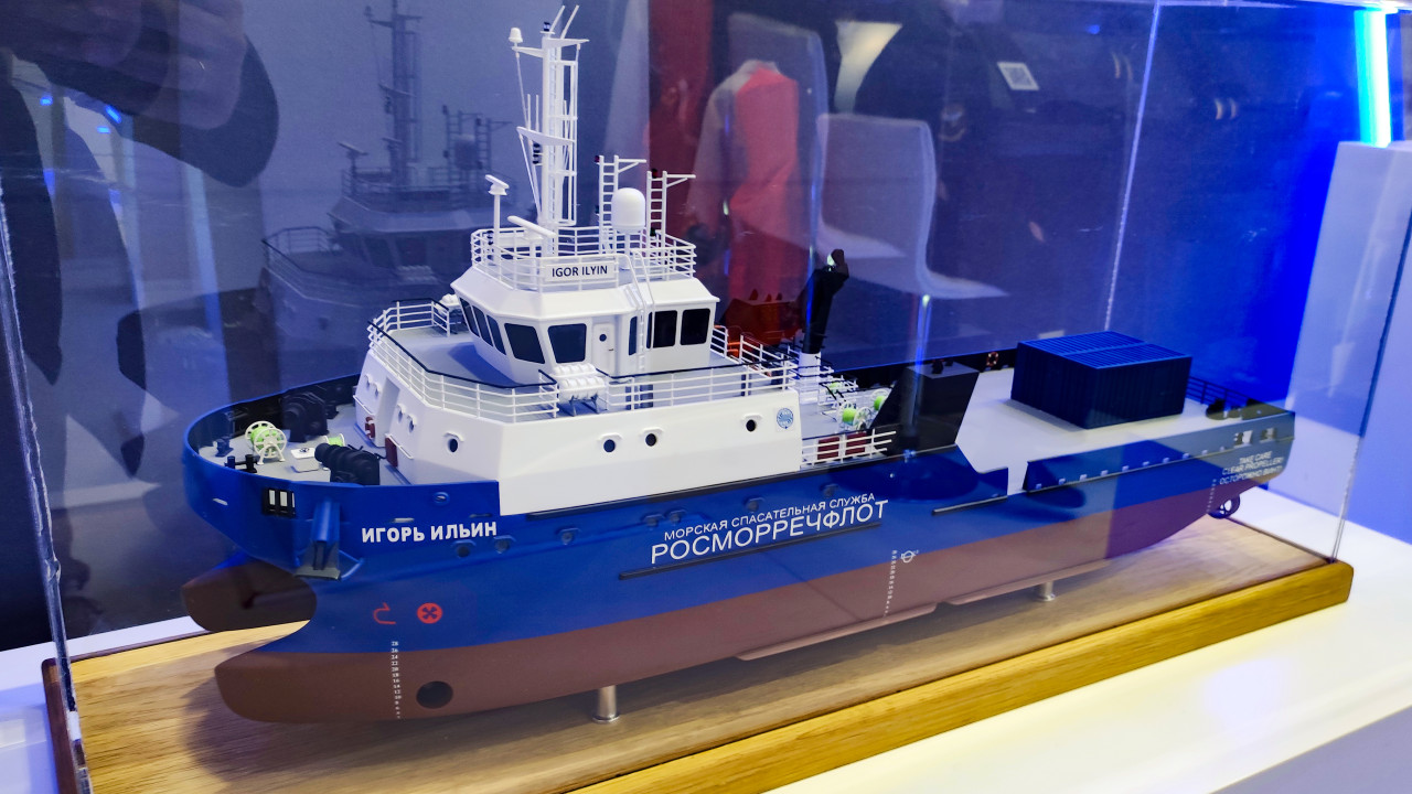 Модель спасательного судна «Игорь Ильин» в витрине выставки