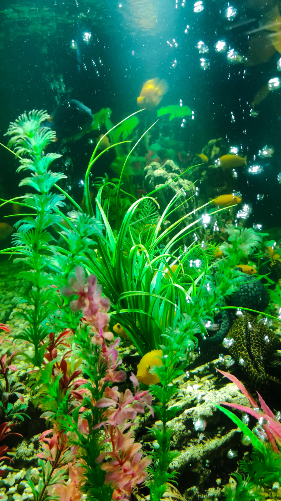 аквариум подводный мир рыбы декоративные растения аквариумистика интерьерный объект подсветка водная среда флора интерьерное оформление подводный ландшафт растения вода гостиница Космос ВДНХ зелёные оттенки розовые элементы интерьер подводная среда камни грунт визуальный объект декор водный мир общественная зона туристическая инфраструктура детали интерьерный элементПохожие фотографии