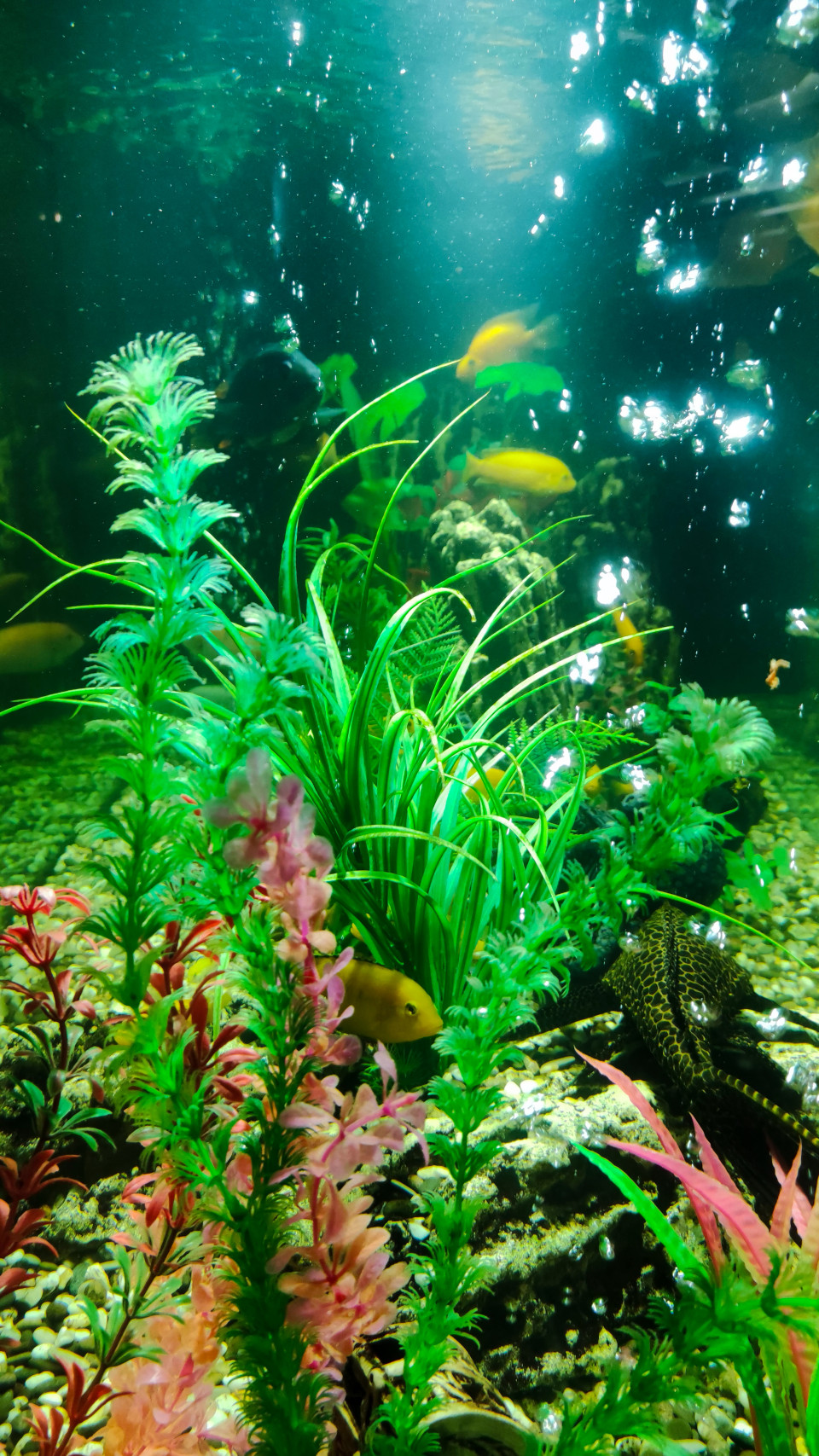 аквариум подводный мир рыбы декоративные растения аквариумистика интерьерный объект подсветка водная среда флора интерьерное оформление подводный ландшафт растения гостиница Космос ВДНХ зелёные оттенки декоративные элементы грунт композиция пузыри свет детали природный мотив интерьер общественное пространство декор аквариумный дизайн камни листваПохожие фотографии