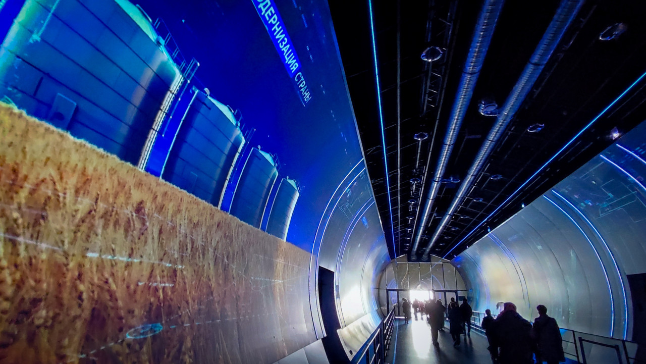 вднх галерея достижения россии мультимедиа цифровая экспозиция тоннель панорамная стена визуализация экспозиционный дизайн экран инновации москва современная выставка цифровой контент ВДНХ галерея Достижения России павильон А выставка Россия сельское хозяйство модернизация зерно силосы агросектор цифровая стена панорама медиаинсталляция Москва агропромышленность производственные объекты аграрные технологии экспозиция национальные проекты люди освещениеПохожие фотографии