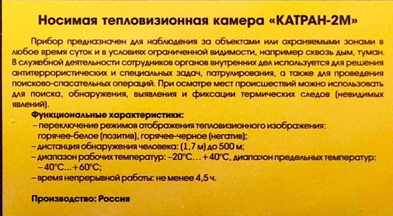 Табличка о носимой тепловизионной камере «Катран-2М»