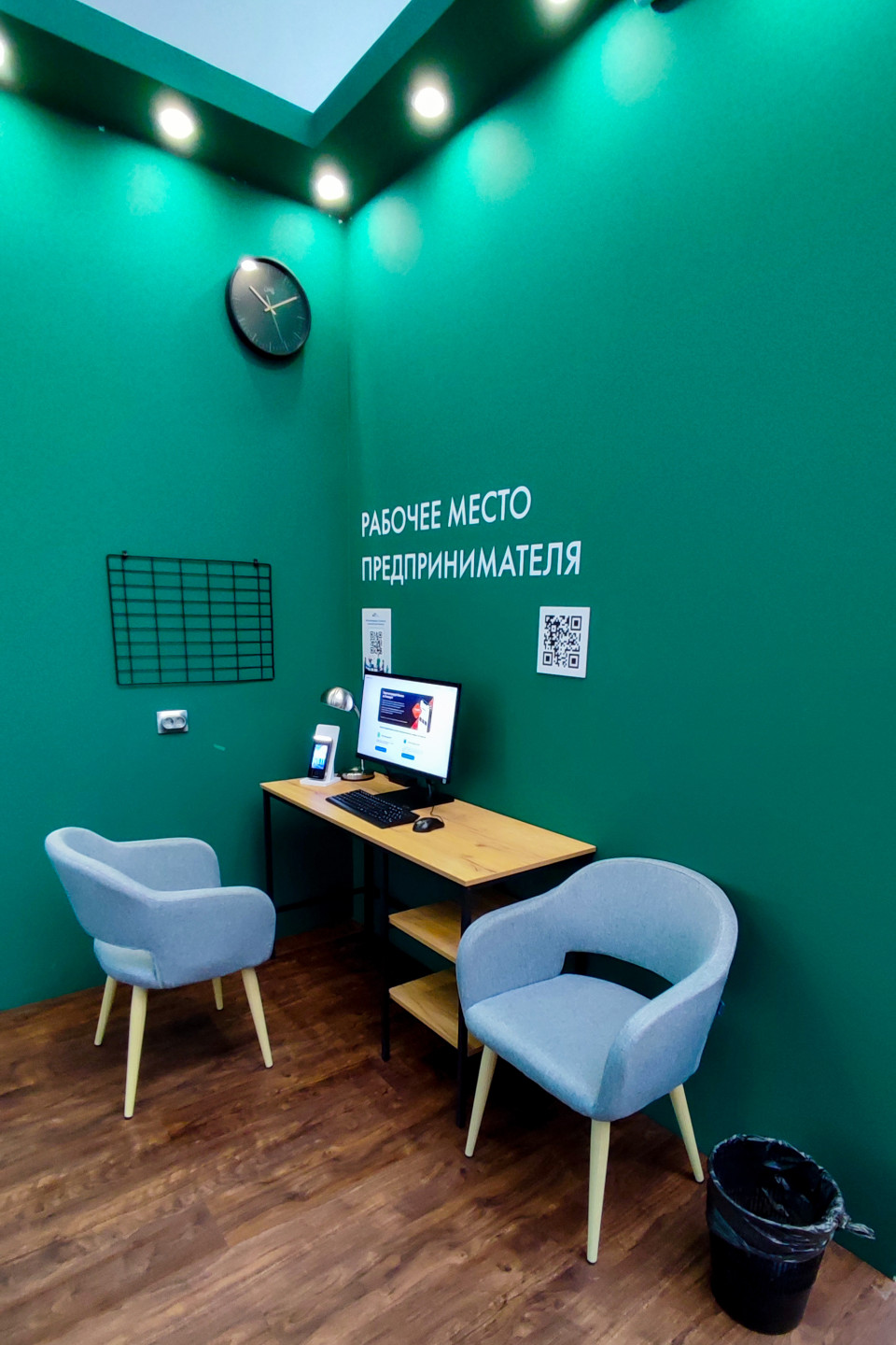 рабочее место предприниматель вднх умные финансы офисная зона интерьер зелёная стена стол и компьютер оборудование бизнес сервисы цифровые услуги экспозиция дизайн павильон рабочая среда выставка ВДНХ Умные финансы Москва 2023 2024 стол кресла компьютер лампа организация пространства консультации бизнес мебель подсветка сервисы цифровая поддержкаПохожие фотографии