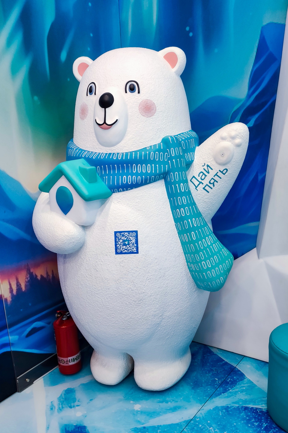 вднх выставка россия инсталляция декор макет медведь Росреестр символ Умный кадастр выставка ВДНХ форум персонаж цифровые сервисы QR код домик двоичный код брендирование государственные услуги презентация интерьер экспозиция официальный стенд декоративный объект публичное пространство арктическая тема 2024Похожие фотографии