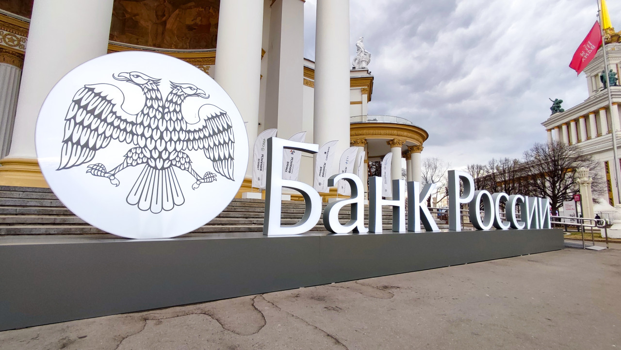 Логотип Банка России на фоне колонн павильона №71 ВДНХ