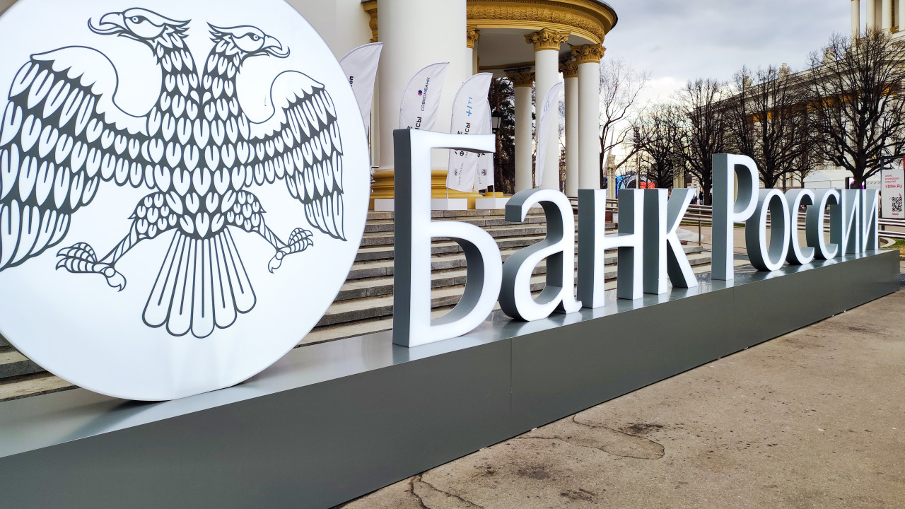 Световой символ Банка России возле колонн павильона №71 ВДНХ