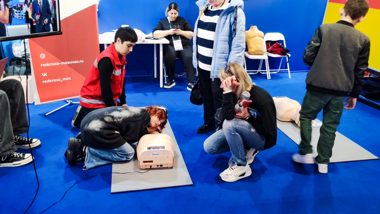 вднх выставка россия минздрав мастер класс обучение образовательная программа демонстрация СЛР реанимация манекен инструктор Красный Крест первая помощь ВДНХ 2024 Минздрав практика тренинг проверка дыхания здоровье спасение подготовка населения медслужбы тренажёр публичное мероприятие безопасность медики обучение подростков волонтёрыПохожие фотографии