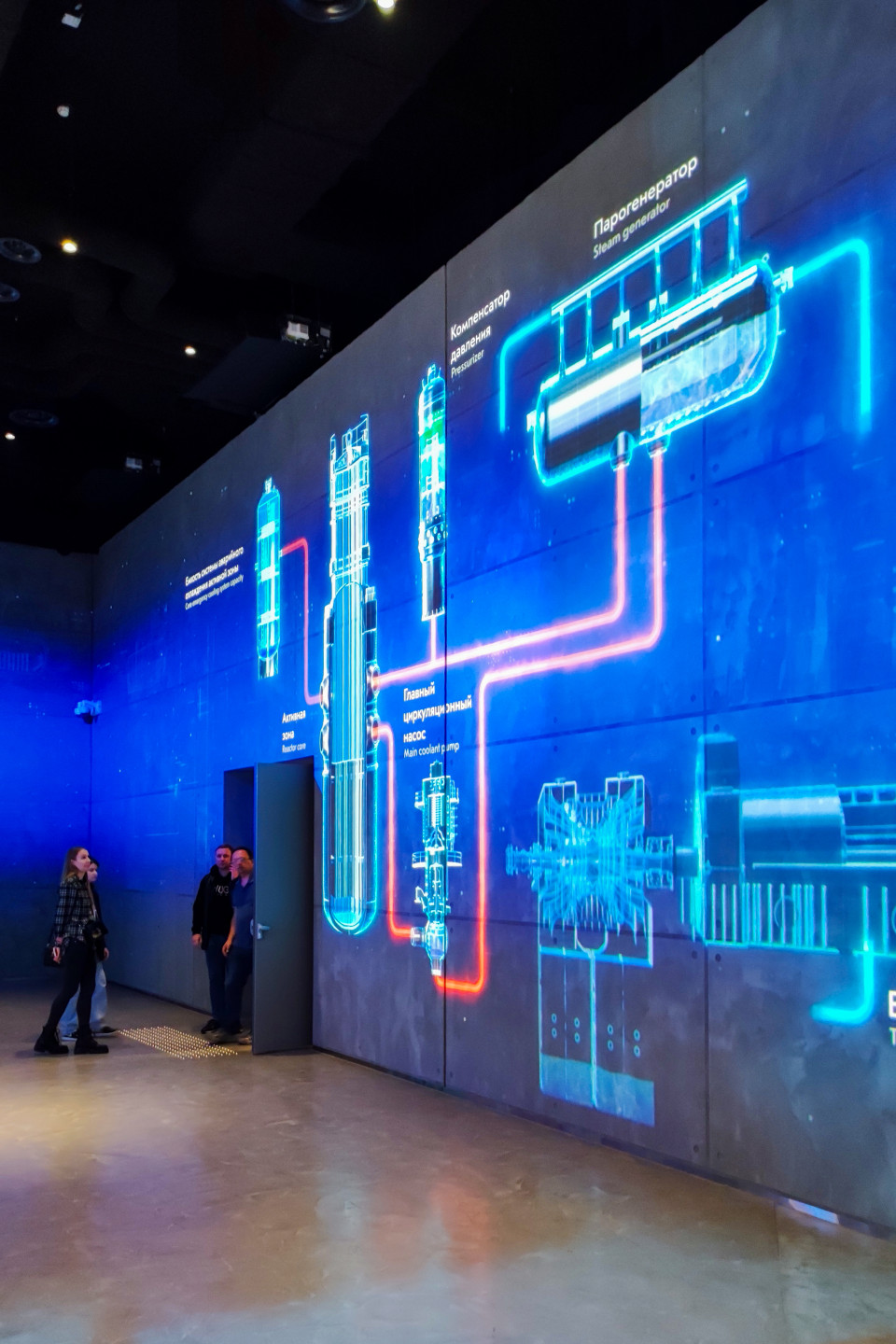 Световая схема оборудования ВВЭР-1200 на стене экспозиции павильона «Атом»