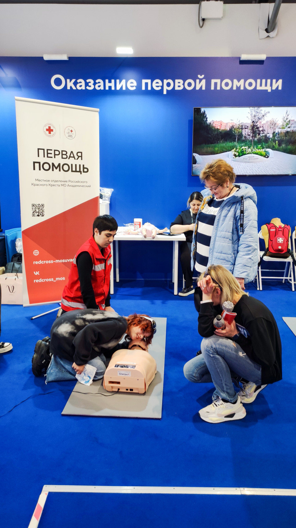 Обучение первой помощи на стенде Красного Креста и Центра медицины катастроф