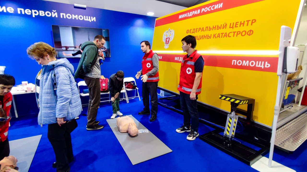 Демонстрация навыков первой помощи на выставке Минздрава России