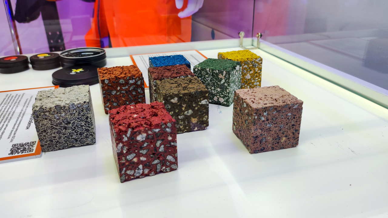 Коллекция цветных образцов асфальтобетона на выставке дорожных технологий