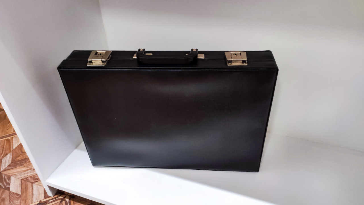 портфель чемодан деловые аксессуары документы ретро доцифровая эпоха выставка вднх экспозиция офисные предметы рабочая среда интерьер полка хранение кожаный портфель металлические замки бизнес атрибуты реквизит музейная зона пространство предмет быта демонстрация экспонат организация стиль рабочий аксессуар ВДНХПохожие фотографии