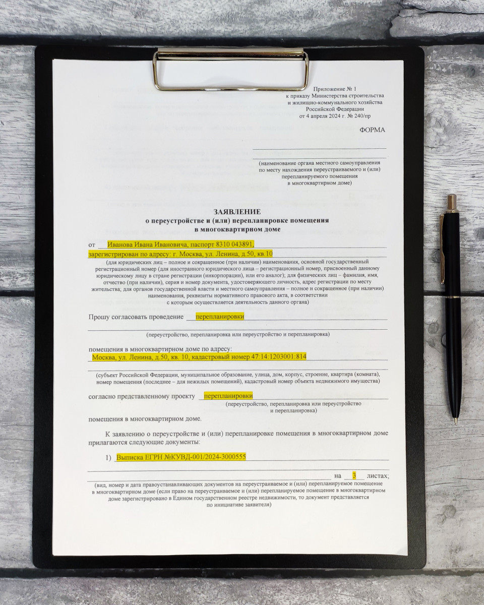 документы юридическая документация оформление жилищные вопросы недвижимость заявление перепланировка заполненный документ адрес паспортные данные кадастровый номер планшет зажим ручка квартира многоквартирный дом юридические документы жилищное право подача заявления технические изменения проект согласование процедура административная форма правовые вопросы ремонт техническая документация бумага бланкПохожие фотографии