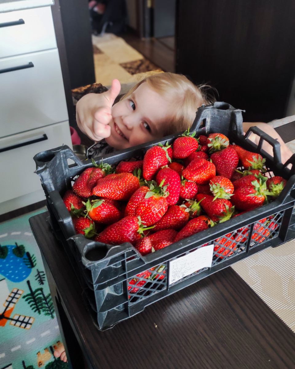 клубника свежие ягоды урожай сезонные продукты натуральная еда красные ягоды продукты питания хранение ягод летний урожай пищевые продукты питание ребенок жест палец вверх ящик с ягодами домашняя обстановка кухня стол спелые ягоды семья дети сбор урожая крупные плоды фруктово ягодная продукция домашняя жизнь контейнер бытовая сцена столешница яркие ягодыПохожие фотографии