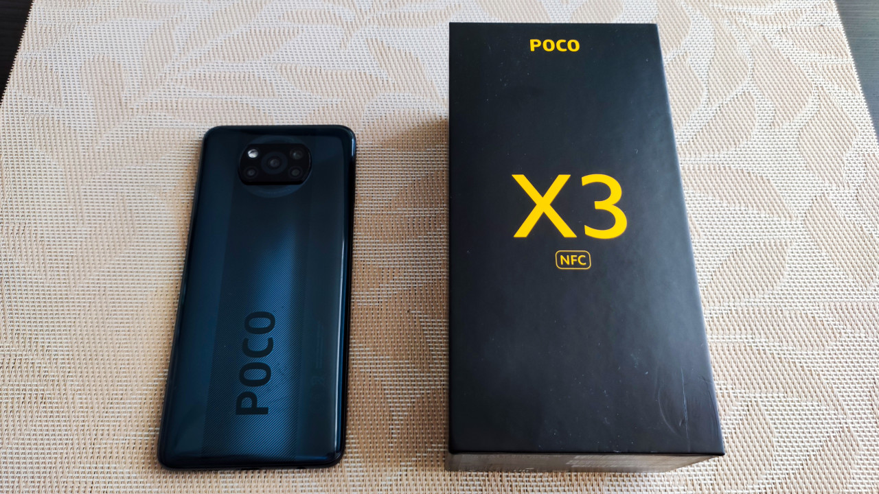 Смартфон POCO X3 NFC и фирменная коробка на столе