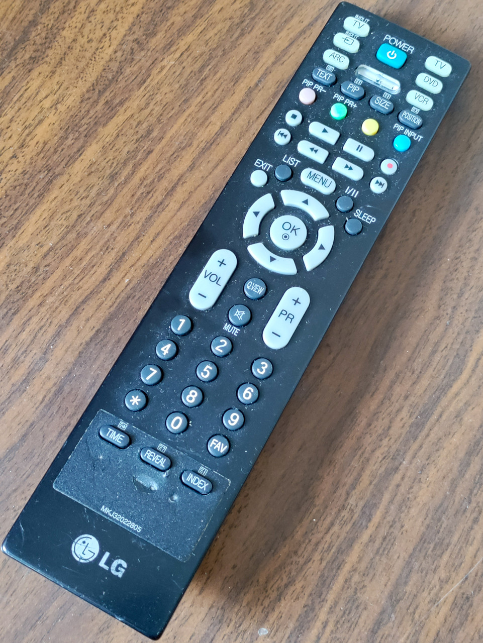 пульт lg дистанционное управление телевизор тв бытовая техника электроника цифровые кнопки управление тв функциональные кнопки использование пульта пользователь рука пульт пульт LG ТВ LG кнопка питания навигация OK телетекст громкость переключение каналов PR VOL управление интерфейс деревянная поверхность оборудование устройство использование обзоры техники инструкции ТВ приставка домашняя техникаПохожие фотографии