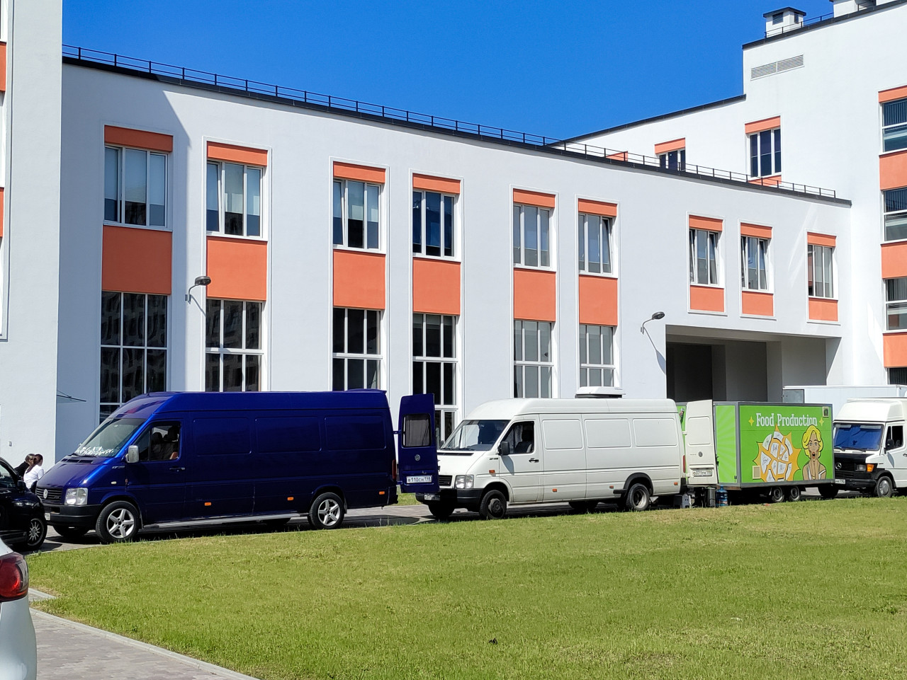 съёмочная группа технический транспорт фургон оборудование для съёмок организация съёмок рабочий процесс городская среда инфраструктура служебный транспорт подготовка площадки логистика техническая зона транспортная база работа команды выездная съёмка фургоны автомобили сервисные машины здание оранжевые вставки фасад окна газон сервисные службы городская инфраструктура доставка административное здание парковка транспорт микроавтобус рекламный фургон Food Production обслуживание объектов внешняя территория техника дневной свет городской объект поставки обслуживание учрежденийПохожие фотографии