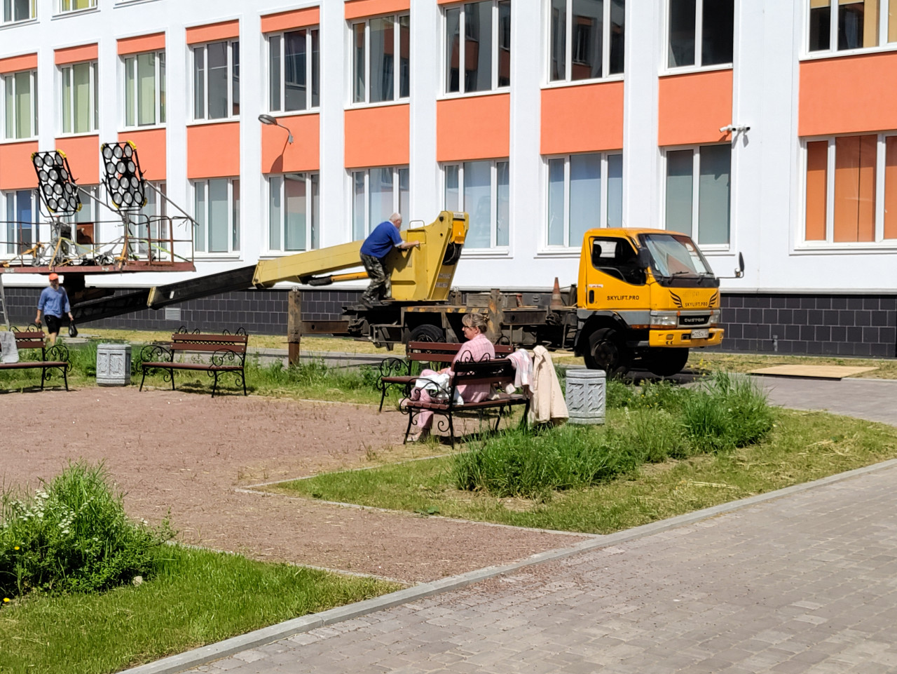 съёмочная группа технический транспорт фургон оборудование для съёмок организация съёмок рабочий процесс городская среда инфраструктура служебный транспорт подготовка площадки логистика техническая зона транспортная база работа команды выездная съёмка осветительная платформа подъёмная техника световые приборы установка света грузовик подготовка съёмок инженерная техника оборудование для кино зона отдыха люди на скамейках городская территория фасад здания наружная съёмка размещение оборудования монтаж света техническая команда уличная площадка работа на высоте световой комплекс профессиональное оборудование транспорт съёмочной группы работа инженераПохожие фотографии