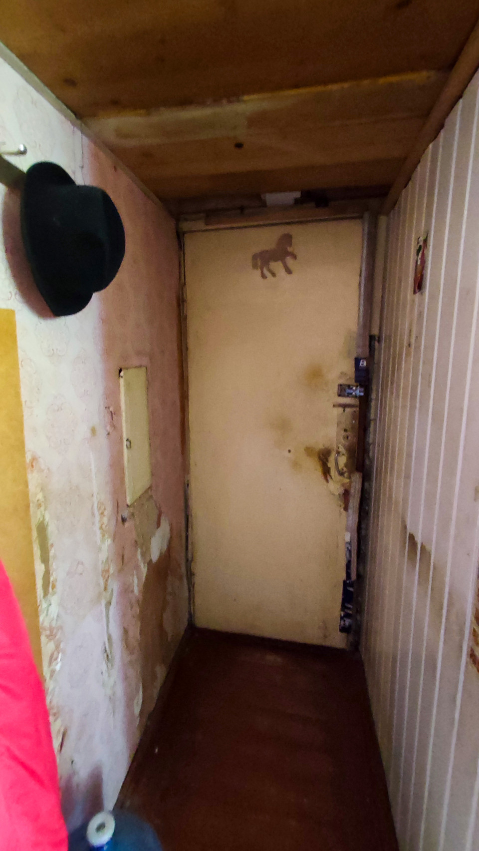 квартира жилое помещение интерьер бытовая обстановка домашние вещи бытовые условия городская квартира мебель бытовые предметы жилой дом повседневная жизнь внутреннее пространство прихожая коридор межкомнатная дверь деревянный потолок крючок шляпа обои вертикальные панели старый дом узкий коридор бытовая среда дверной проём стены изношенные стены отделка деревянный пол домашние условия советский интерьер коридор в квартире прихожая в доме обстановка элементы интерьера домПохожие фотографии