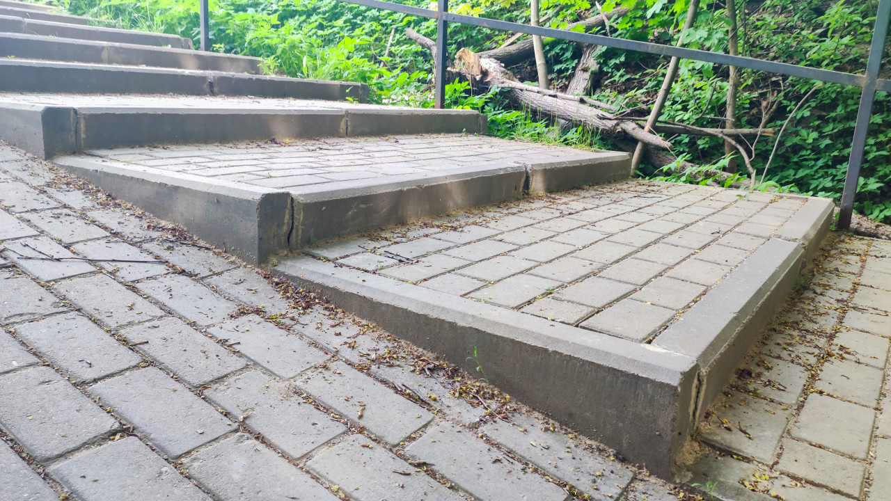 городской пейзаж городские улицы дороги дома улица городская среда город городской вид городская улица городская инфраструктура городской ландшафт урбанистика городская атмосфера уличное пространство лестница бетонные ступени тротуарная плитка повреждённые ступени трещины сколы уклон пешеходная зона городской рельеф инфраструктура благоустройство ремонт износ покрытия ограждение металлические перила зелёные насаждения лесопарк муниципальная территория безопасность уличная среда дорожные работы состояние покрытия пешеходный маршрут архитектурные элементы дефекты лестницы природная зонаПохожие фотографии