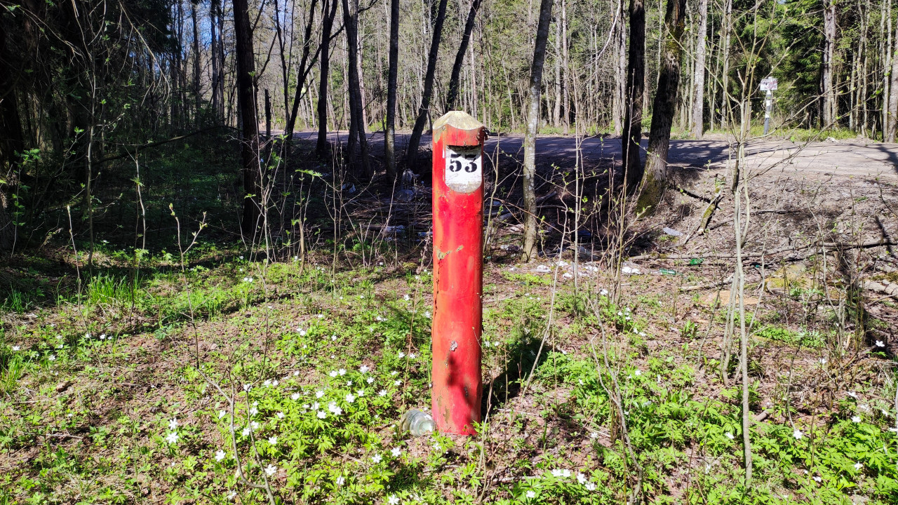 лес весна растительность деревья экосистема природная среда дикая природа лесной массив подлесок ландшафт столб номер 55 ориентир анемоны цветы кустарники опушка дорога навигация указатель природная зона лесная тропа зелёная трава тени солнечный день ориентирование инфраструктура лесная местность экология сезонность ботаника растительный покровПохожие фотографии