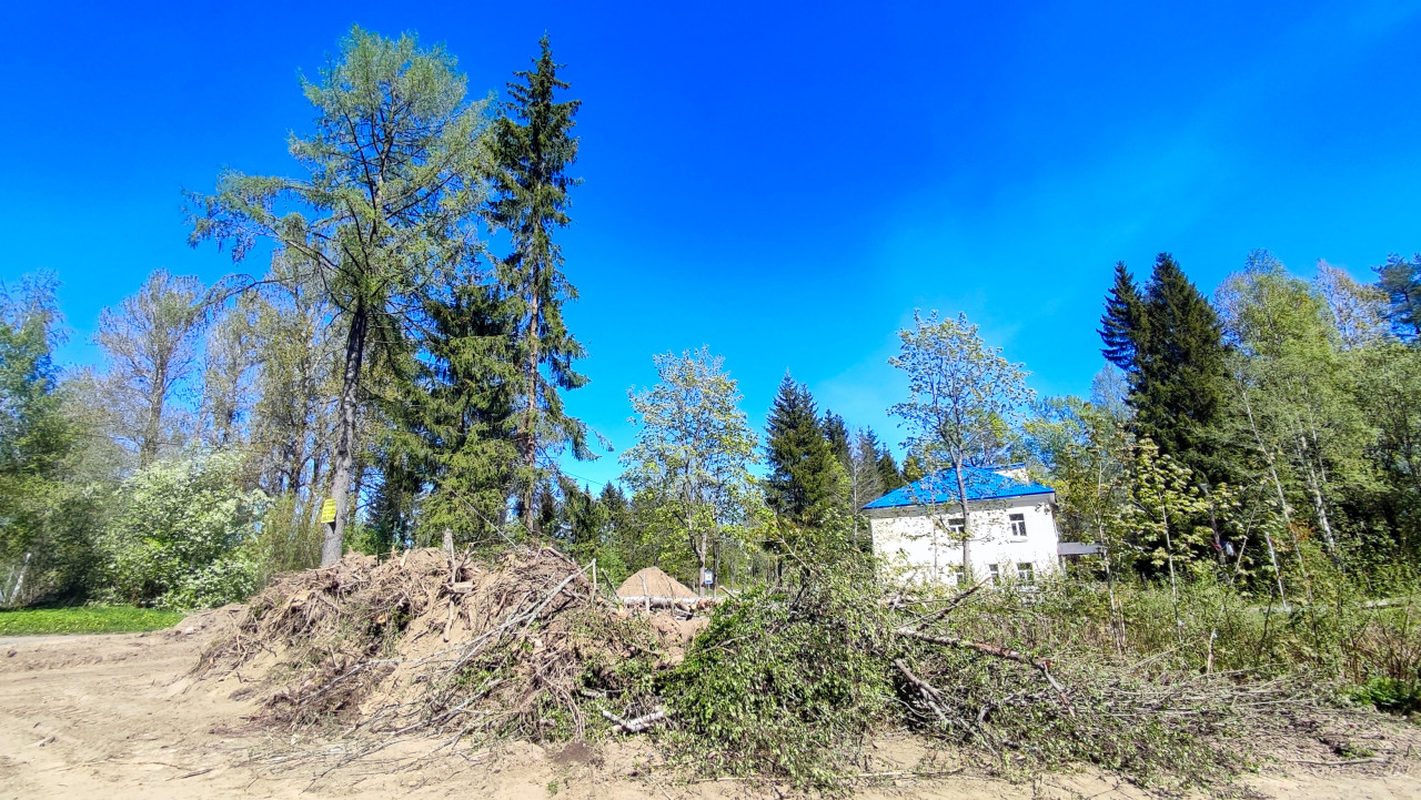 благоустройство благоустройство территории стройплощадка строительная площадка строительные работы строительство строительный участок вырубка деревьев расчистка ветки корни грунт участок здание синяя крыша лес кустарник природная зона земляные работы экология северо запад России территория работ подготовка участка весенний день зелёные насаждения пни открытая местность рабочий процесс природная растительность окружение здания ландшафт деревьяПохожие фотографии