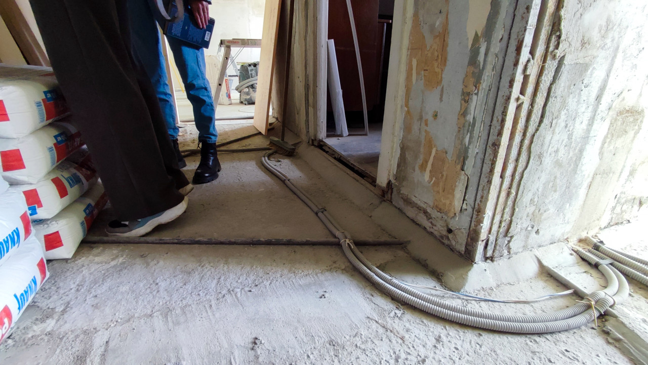 Прокладка электрических кабелей в полу на объекте капитального ремонта