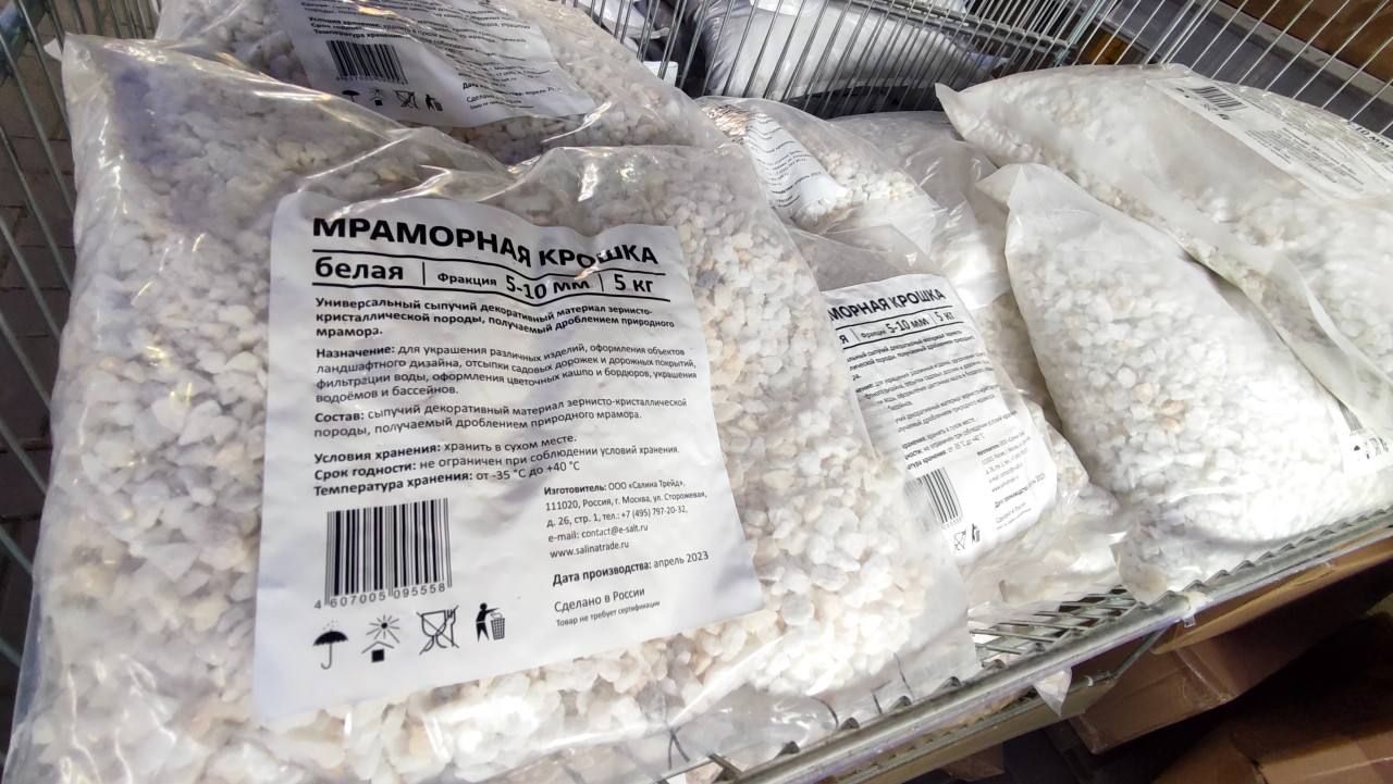 ремонт строительные материалы упаковка складирование мраморная крошка декоративный материал фракция 5–10 мм белая крошка мешок магазин корзина сыпучие материалы ландшафтный дизайн садовые товары отделочные работы природный камень каменная крошка ассортимент полка товары для дачи декоративное оформление строительный отдел минералы декор упаковочный материал магазин стройматериалов строительное сырьёПохожие фотографии