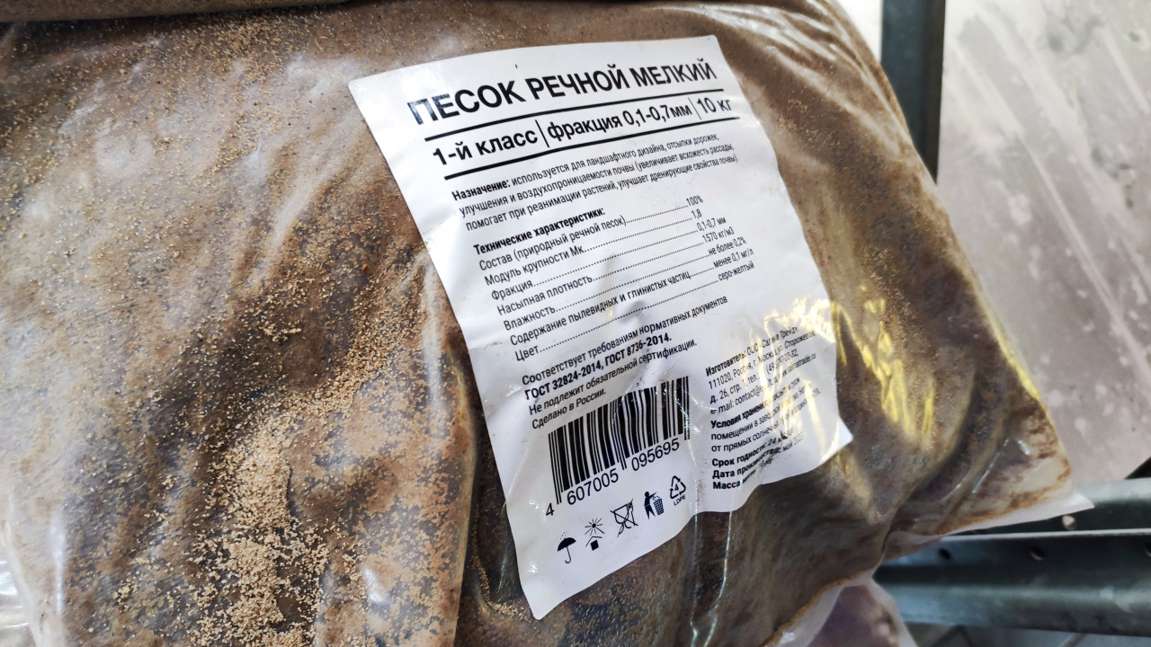 Пакет мелкого речного песка фракции 0,1–0,7 мм на витрине