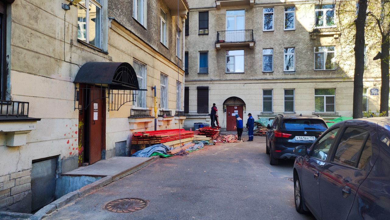 ремонт строительные материалы упаковка складирование двор жилой дом рабочие балки дерево парковка автомобили подъезд фасад штукатурка окна решётки городская среда строительство подготовка материалов дворовая территория жилой фонд окрашенная древесина тенты оборудование городская инфраструктура общественное пространство жилой квартал текущий ремонтПохожие фотографии