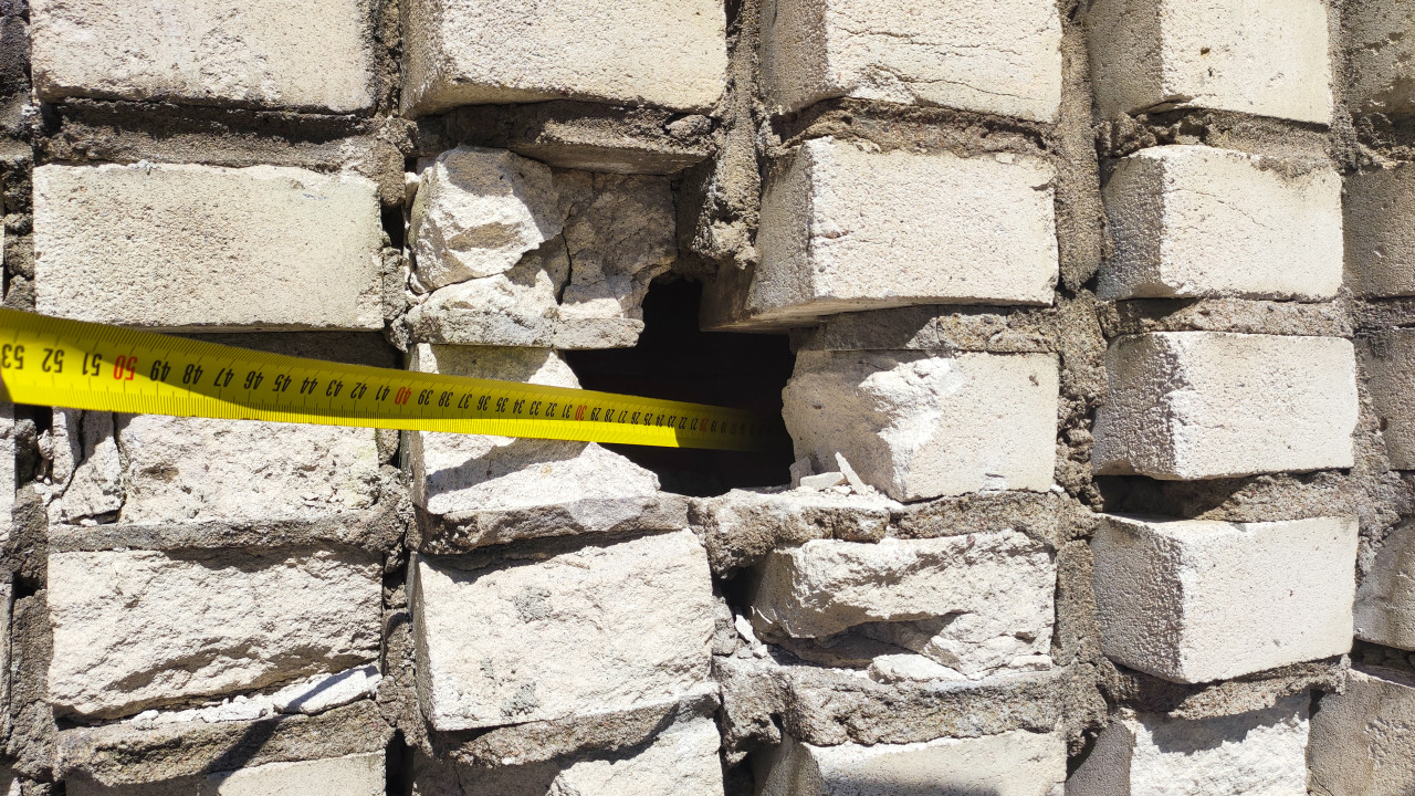 рулетка линейка измерение размеры сантиметры измерения измерительные работы обмеры замеры исследование качество контроль контроль качества проверка качества оценка качества экспертиза кирпичная стена отверстие в кладке пробоина дефект стены разрушение кирпича строительные дефекты измерение рулеткой диагностика фасада наружная стена обследование здания строительная экспертиза трещины разрушенная кладка смещение кирпича техническое состояние наружные работы обследование конструкции повреждение материала строительный объект ремонт фасада наружный дефект строительные измерения восстановление стены реновация осыпание швов обследование фасада строительные материалы дефектПохожие фотографии