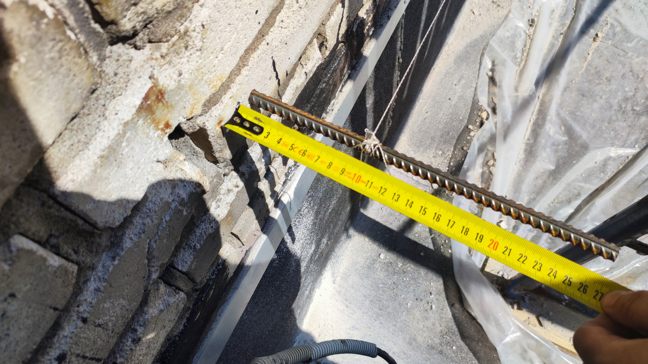 рулетка линейка измерение размеры сантиметры измерения измерительные работы обмеры замеры исследование качество контроль контроль качества проверка качества оценка качества экспертиза арматура кирпичная стена дефекты кладки фасад строительная экспертиза обследование здания выступ стены строительные работы реконструкция технический надзор контроль геометрии кровля разметка строительные инструменты ремонт фасада строительная площадка инженерные работы наружное обследование кирпич разрушение облицовки замер выступа строительные дефекты подготовительные работы контроль состоянияПохожие фотографии