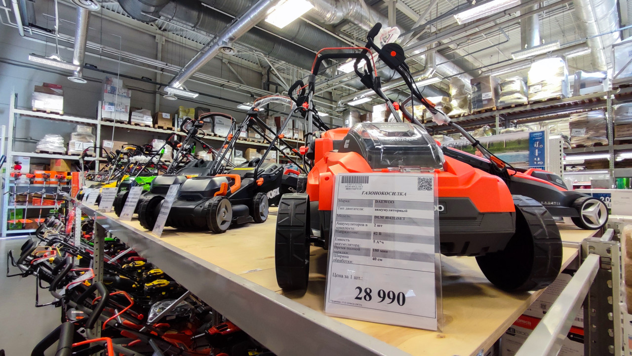 садовая техника магазин ритейл оборудование для сада ассортимент витрина выбор техники дачный инвентарь газонокосилка аккумуляторная косилка Daewoo оборудование для дачи магазин техники стеллаж торговый зал электрический инструмент уход за садом садовый инвентарь аккумулятор цена характеристики техники оборудование для газона техника для участка садовый диапазон зелёные зоны роботизированная техника моторный инструмент бытовая техника электрокосилка складские стеллажиПохожие фотографии