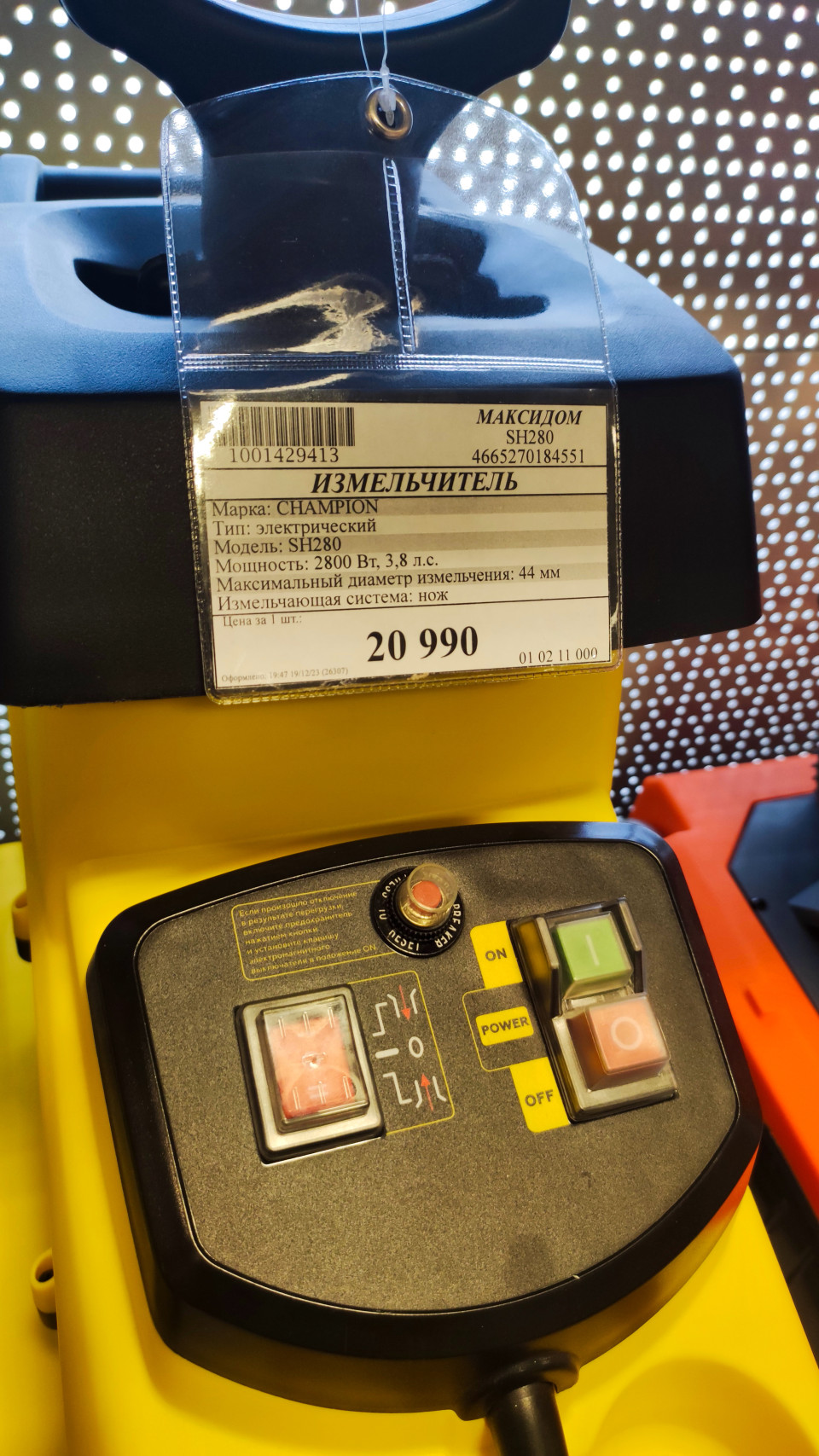 садовая техника магазин ритейл оборудование для сада ассортимент витрина выбор техники дачный инвентарь измельчитель Champion SH280 электрический измельчитель панель управления оборудование для дачи корпус характеристики цена нож техника для участка измельчение веток электрический мотор бытовая техника торговый стеллаж управление кнопки предупреждающие знаки садовый инвентарь монтаж оборудования дачный инструментПохожие фотографии